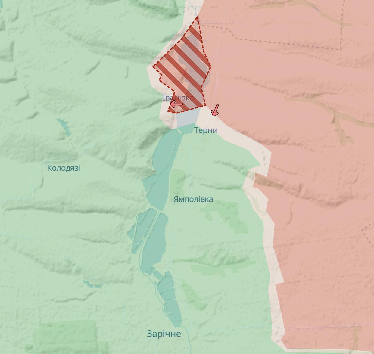 Крім того, під контролем росіян тепер Іванівка на Лиманському напрямку, в районі села Терни, а також Лозова, розташована в Харківській області на лівому березі річки Оскіл.