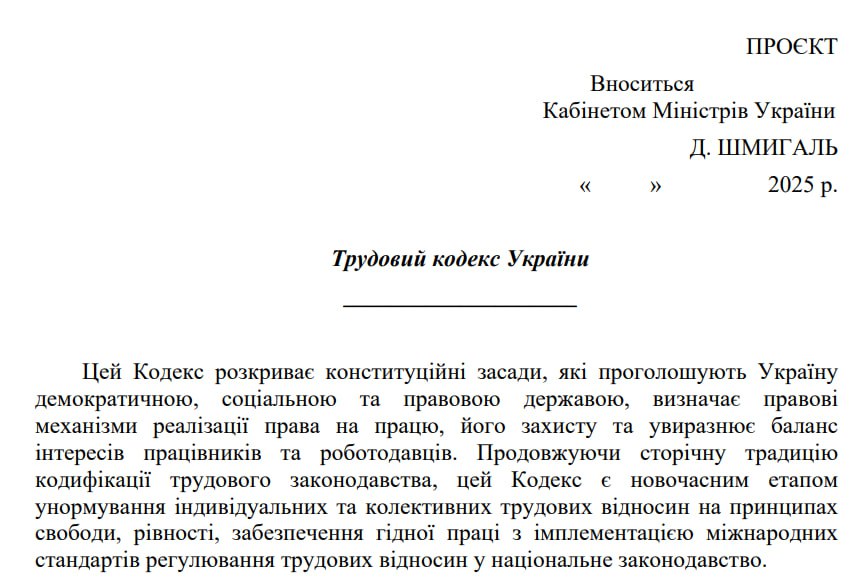 Про це йдеться в проєкті Трудового кодексу, розробленого міністерством.