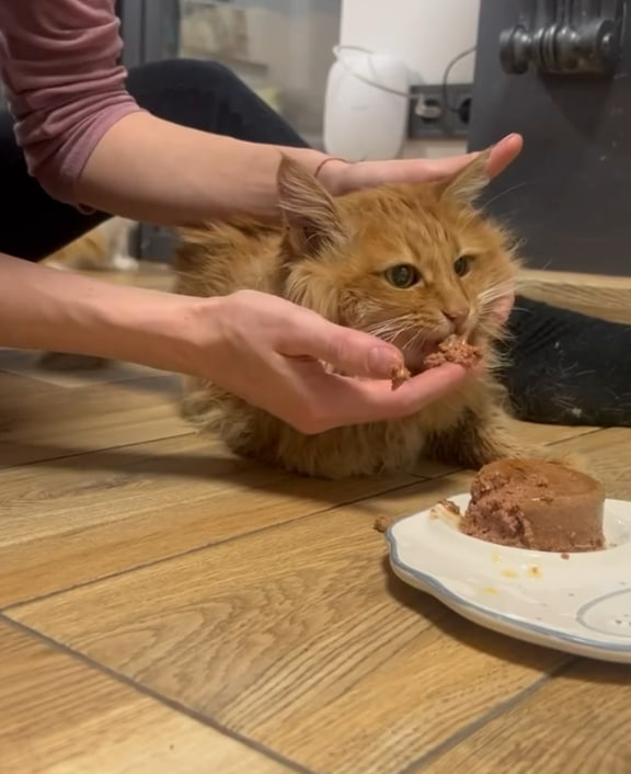 Зараз тварині надають медичну допомогу, зокрема через крапельниці. Коли її стан стабілізується, волонтери планують знайти для кота нову родину за згодою власника.