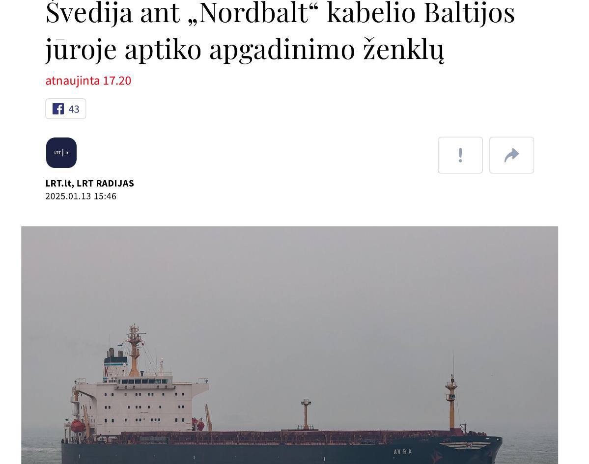 Подібні інциденти викликають занепокоєння щодо безпеки критичної інфраструктури у Балтійському морі, особливо на тлі зростання напруженості у регіоні.