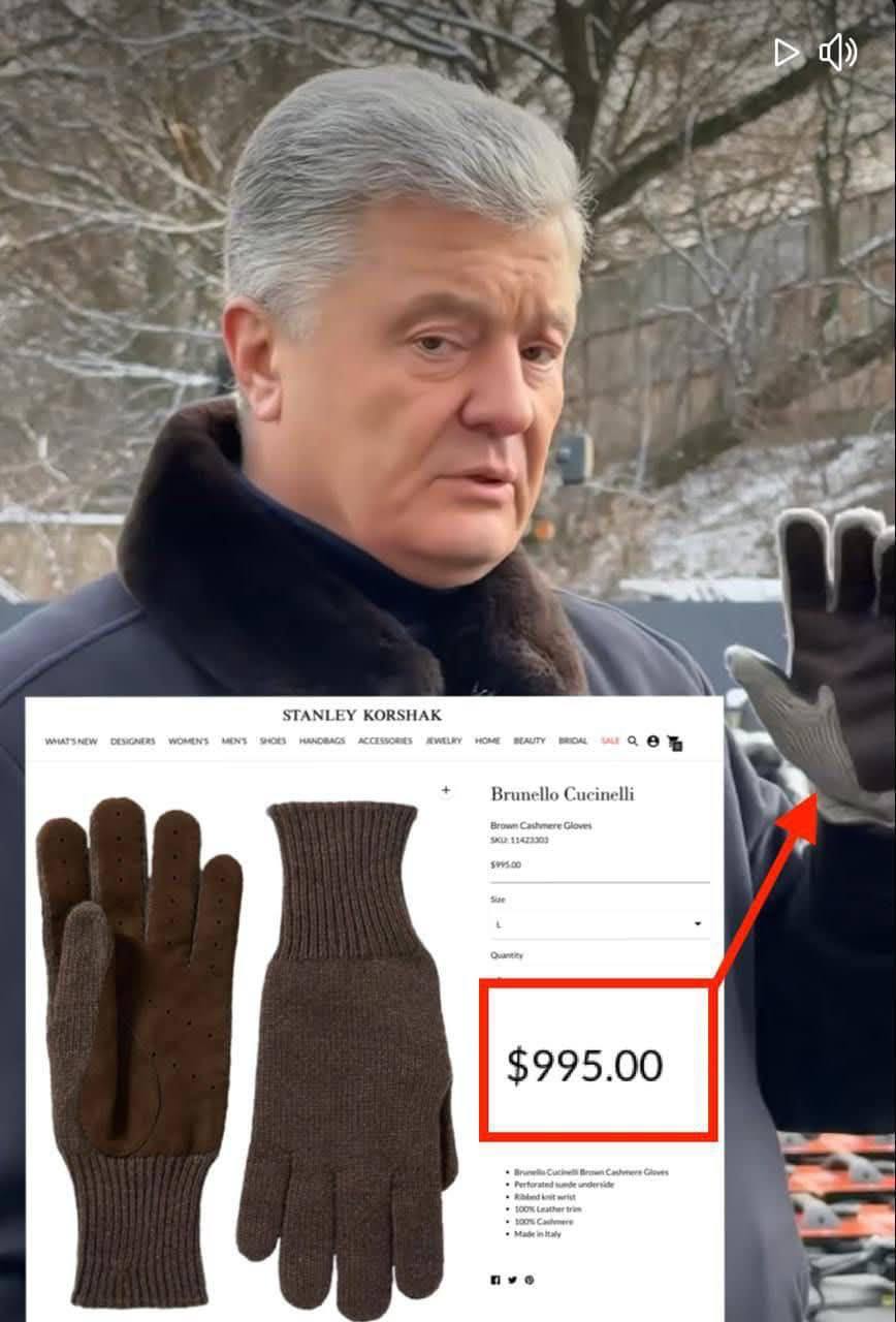 Згідно з інформацією з інтернету, на відео п’ятий президент одягнений у куртку Loro Piana, вартість якої становить 18 400 євро, і рукавички Brunello Cucinelli за 995 доларів.