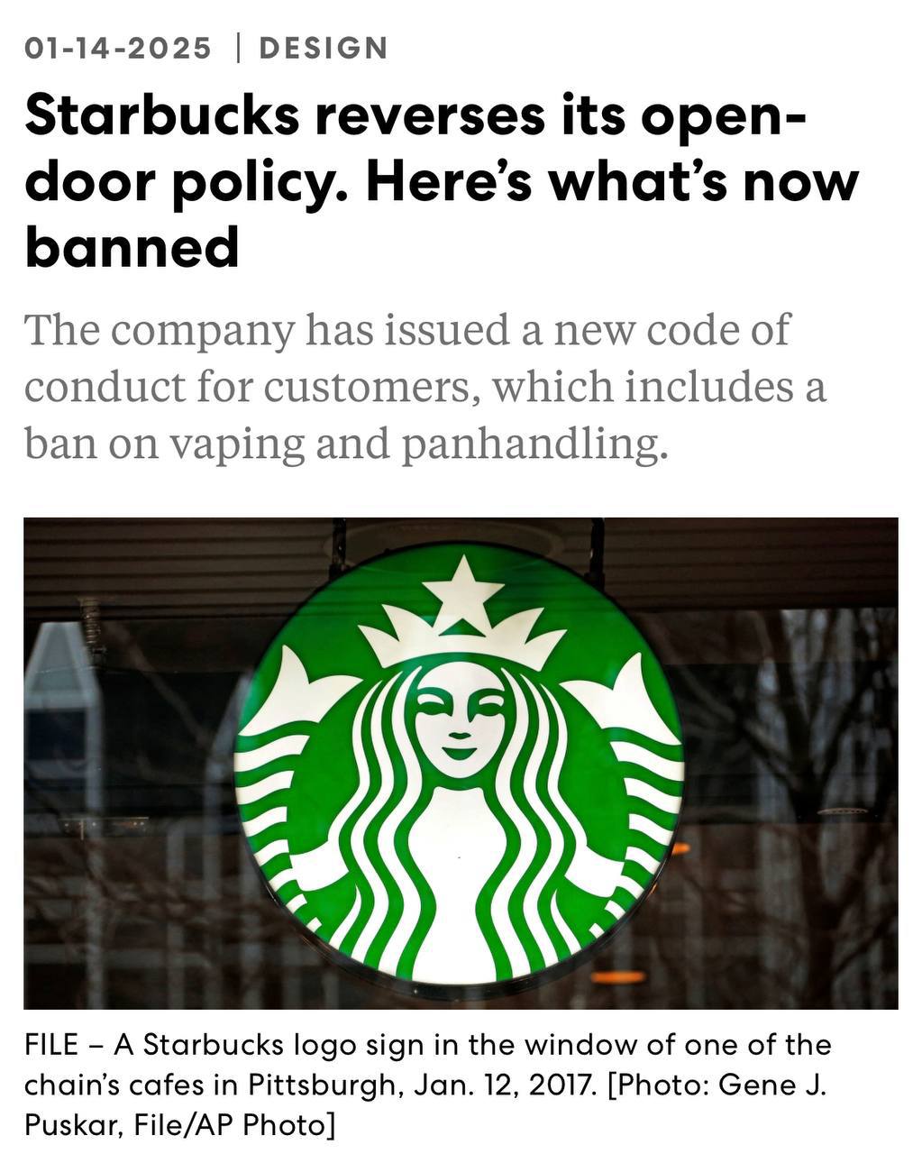 Американська мережа кав’ярень Starbucks змінила свою політику, забороняючи відвідувачам, які нічого не придбали, перебувати в закладах і користуватися туалетами.