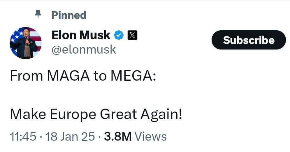 Поруч із MAGA він написав MEGA (Make Europe Great Again).