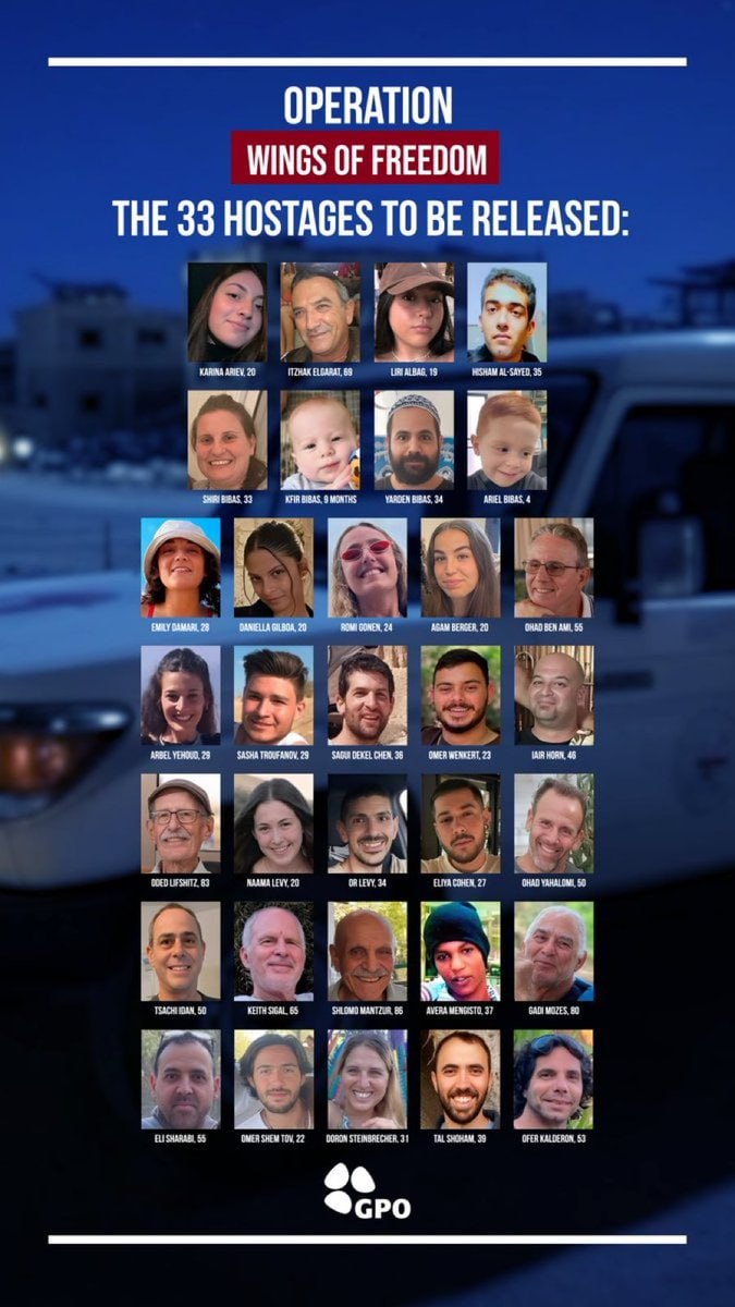 Ізраїль оприлюднив фото 33 заручників, яких мають звільнити на першому етапі