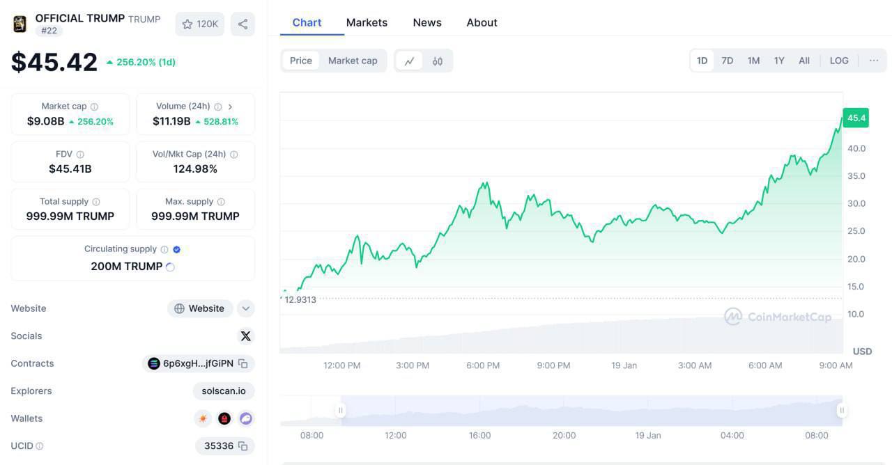 Мемкоїн Трампа за день зріс у ціні на 578% -до $45