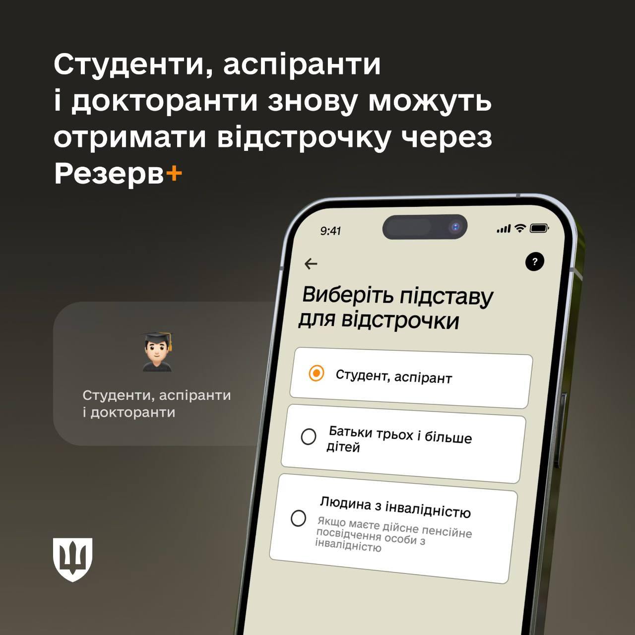 У «Резерв+» тепер діють відстрочки для студентів, аспірантів і докторантів.