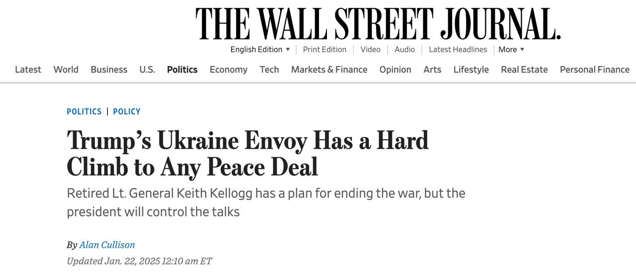 Тому WSJ припускає, що призначення Келлога було «початковим кроком» Трампа, який насправді сам буде вести всі основні переговори.