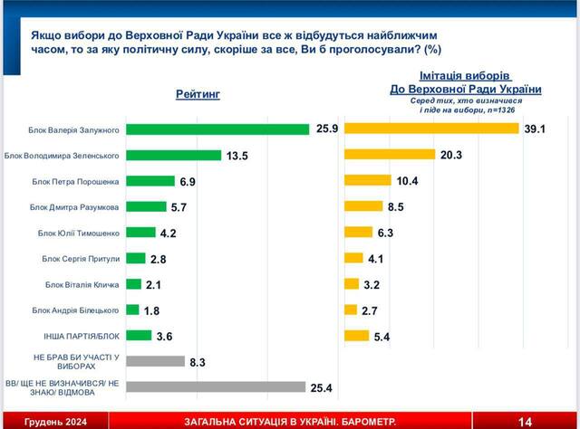 Більшість українців готова підтримати в другому турі виборів президента, якщо такі відбудуться, колишнього головнокомандувача ЗСУ Валерія Залужного.