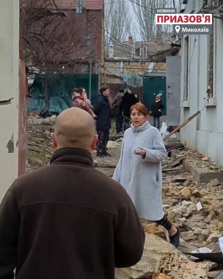 "Я вибігла на вулицю, ледь двері відчинила, тому що їх вибуховою хвилею вивернуло... Бігом що-небудь робити. Усі живі, усі здорові. Дівчатам двері так заламало, що вони через кватирку вилазили", – описує мешканка Миколаєва нічні події.
