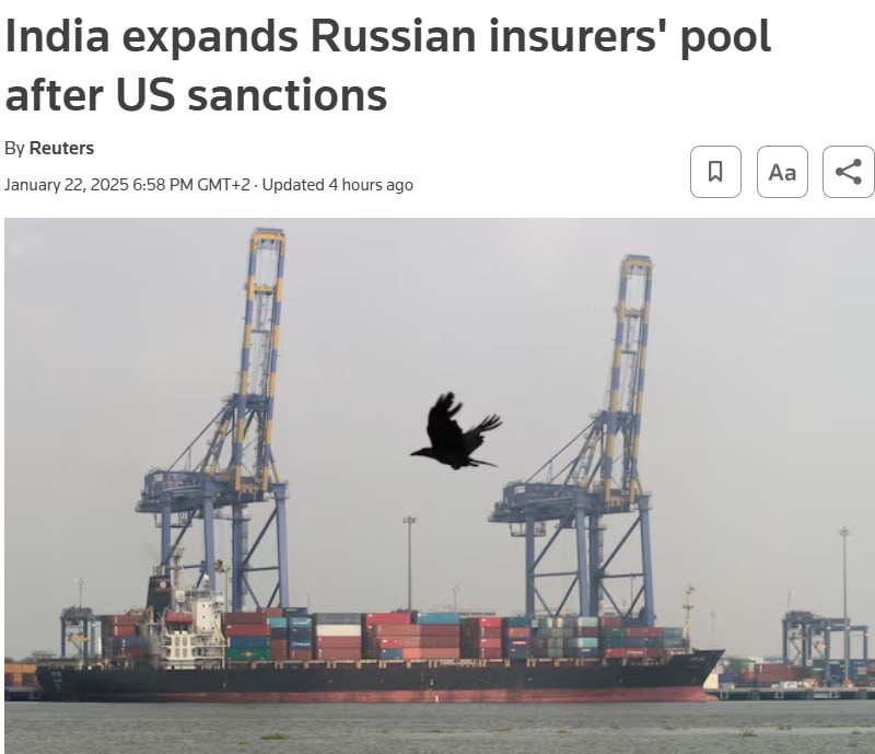 Крім того, Індія визнає російську страхову компанію «Ингосстрах» з дозволом, дійсним до 20 лютого 2029 року. На початку цього місяця Вашингтон запровадив санкції проти «АльфаСтрахования» і «Ингосстраха», а також проти російських нафтових компаній і танкерів, намагаючись скоротити доходи Росії від нафтових продажів.