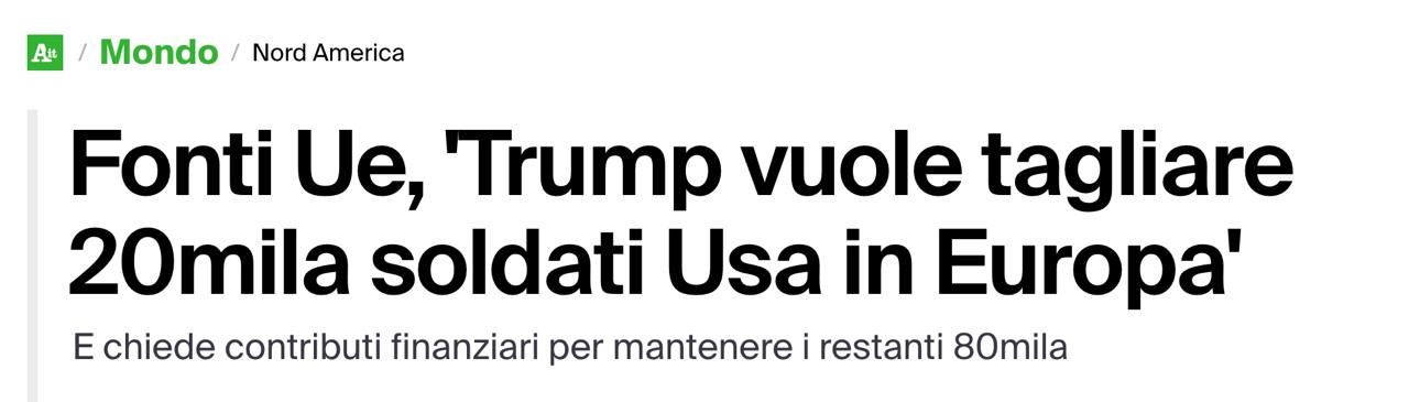 За повідомленням італійського видання ANSA, яке посилається на джерело в європейській дипломатії, Трамп планує вивести з Європи 20 тис. американських військовослужбовців.