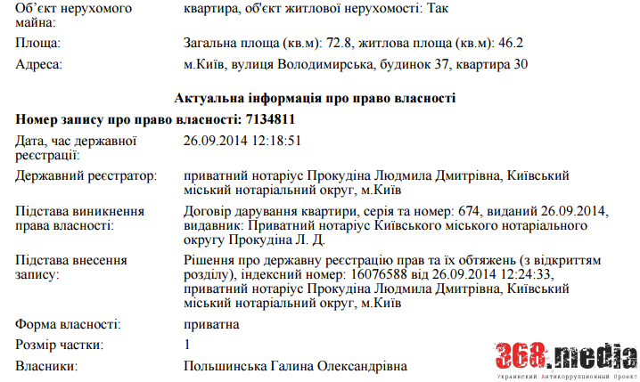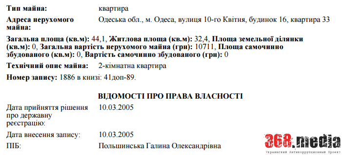 Напротив, в 2011 году человек с похожим ФИО зарегистрирован владельцем квартиры в селе Новоселки Киевской области (80,3 кв. метра).