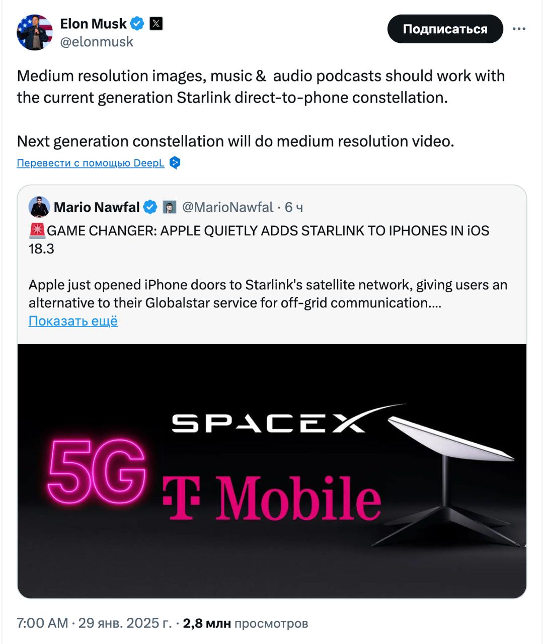 Теги: T-Mobileспутниковый интернетiPhoneStarlink