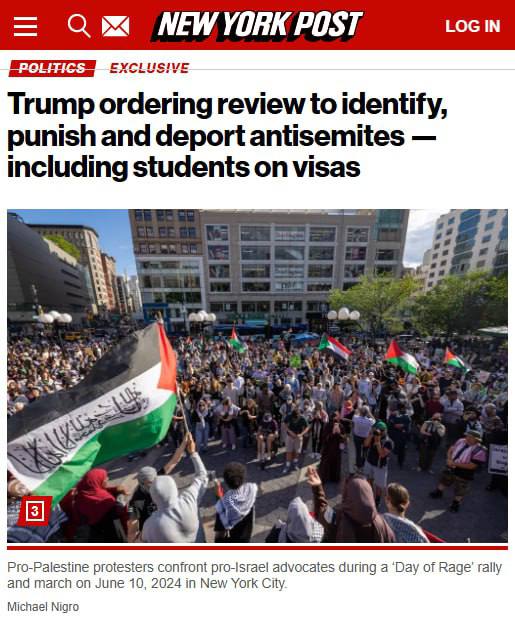 Як повідомляє The New York Post, Трамп збирається підписати указ про депортацію всіх іноземців з антисемітськими поглядами, включно з учнями.