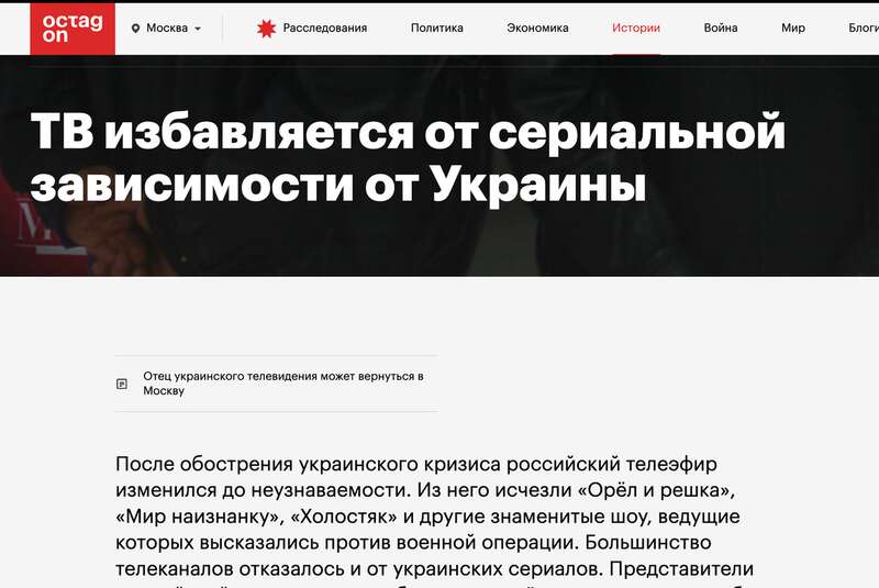Для нас це може звучати дивно, але кремлівські пропагандисти обурювалися тим, що українські кінороби "захоплюють" російський ринок. Різноманітні ресурси навіть проводили "розслідування", у яких за допомогою схем і графіків показували, які саме українські продюсери працюють із російськими телеканалами та як Росія намагається протистояти "серіальній залежності" від України.