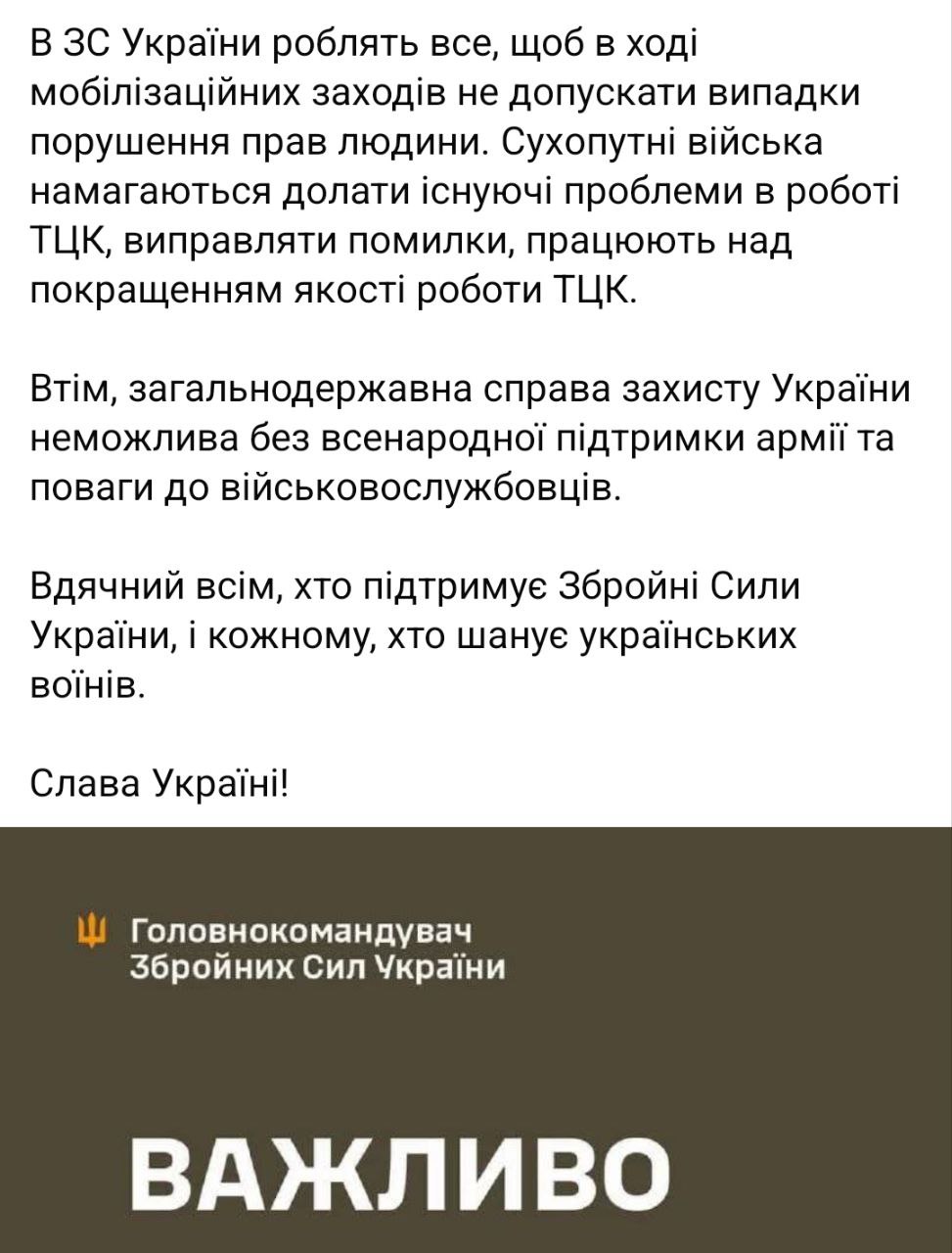 Він розкритикував ці дії та підкреслив, що "в ЗСУ вживають все необхідне, щоб при мобілізації не відбувалося порушень прав людини".