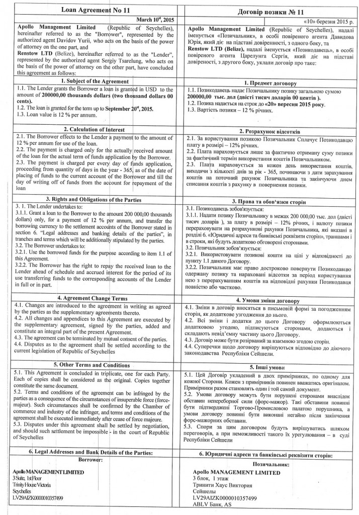 Это обычный договор займа, который подают в банк, чтобы провести платеж.В конце сентября 2015 года Давыдов со своего счета в ABLVперечислил 200 000 долларов СШАна счет Царелунга в этом же банке. Договор займа – это формальный документ, который подали в банк, чтобы тот не задавал слишком много вопросов. Назначение договор займа между Давыдовым и Царелунгомв том, чтобы создать впечатление, что Давыдов какое-то время тому назад якобы занял деньги у Царелунга, а теперь отдает этот долг Царелунгу. Ни для кого не секрет, что такого рода договоры займа не более чем пустые бумажки, которые подкладывают под банковские переводы и к которым никто серьезно не относится.