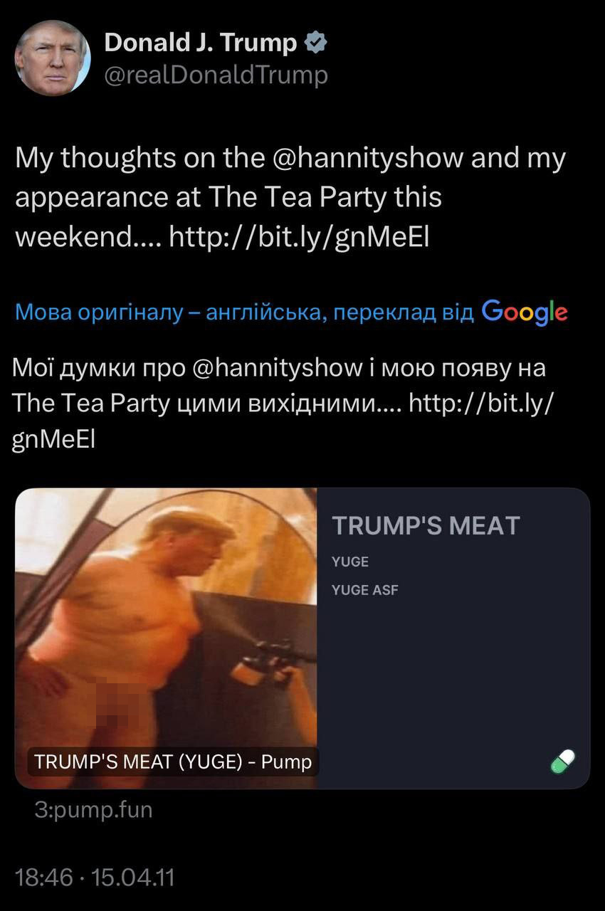 Інцидент пов’язаний із підміною короткого посилання bitly в одному зі старих постів Трампа, датованому 2011 роком. Судячи з усього, X оновив попередній перегляд, через що зображення стало помітним і швидко набрало величезну кількість коментарів.