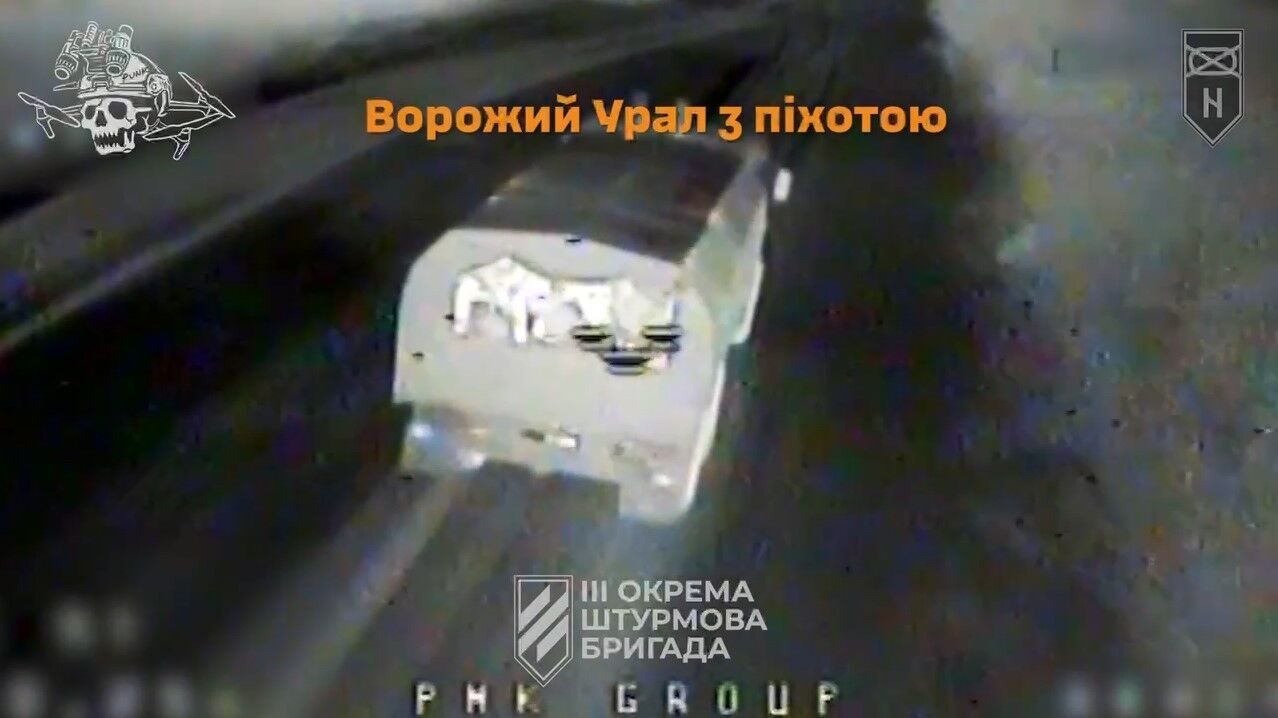 У Третій штурмовій бригаді Збройних сил України показали, як потужними ударами FPV-дронів перетворюють ворога з його озброєнням на попіл. Завантажені автомобілі й бронетехніка горіли разом з екіпажами.
