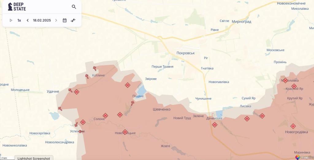 Водночас сили оборони відкинули противника у Малинівки. Також, за даними DeepState, зусиллями 6-го батальйону 12-ї бригади спеціального призначення «Азов» вдалося відсунути російські війська від траси Покровськ – Константинівка.