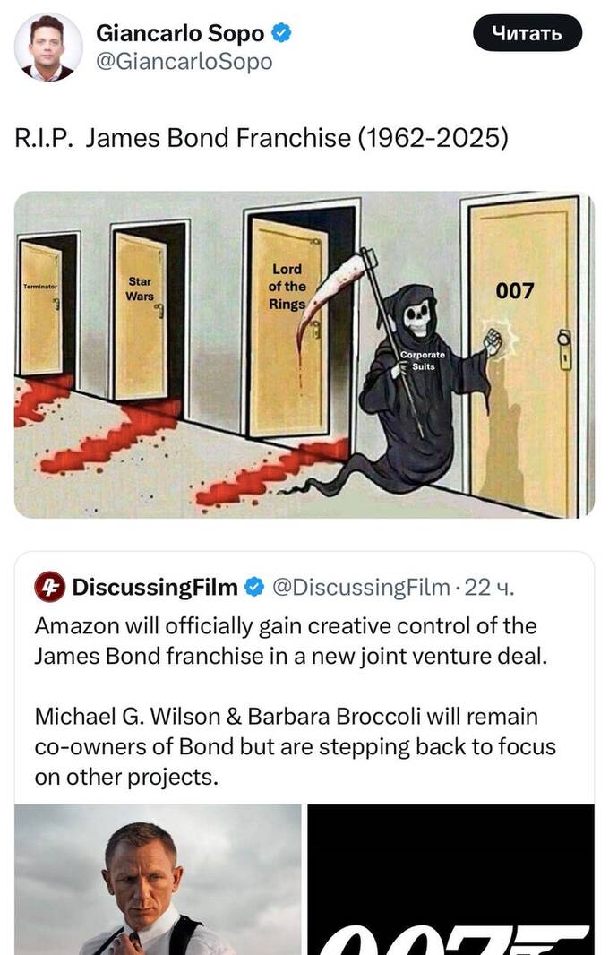 Творчий контроль над франшизою про Джеймса Бонда тепер належить Amazon MGM. Як вважають фанати, це може знищити бондіану.
