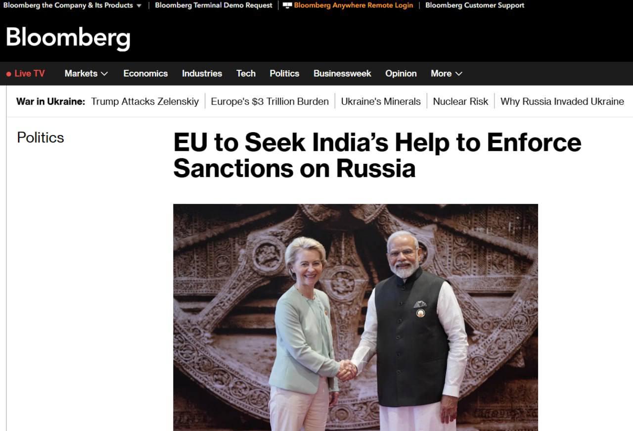 Теги: Санкції проти РосіїСанкціїСанкцииантироссийские санкцииРосіяРоссияІндіяИндияУрсула фон дер ЛяйенЕвросоюзЄвросоюз