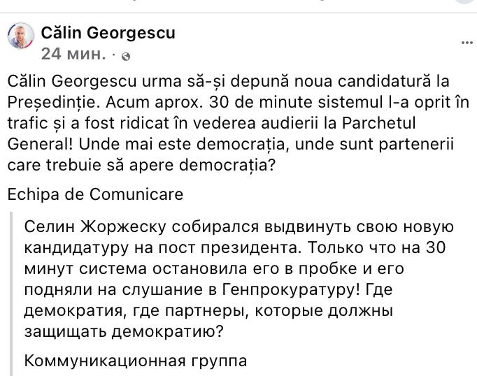 Кандидата в президенти Румунії Калін Джорджеску було затримано, інформує його пресслужба.