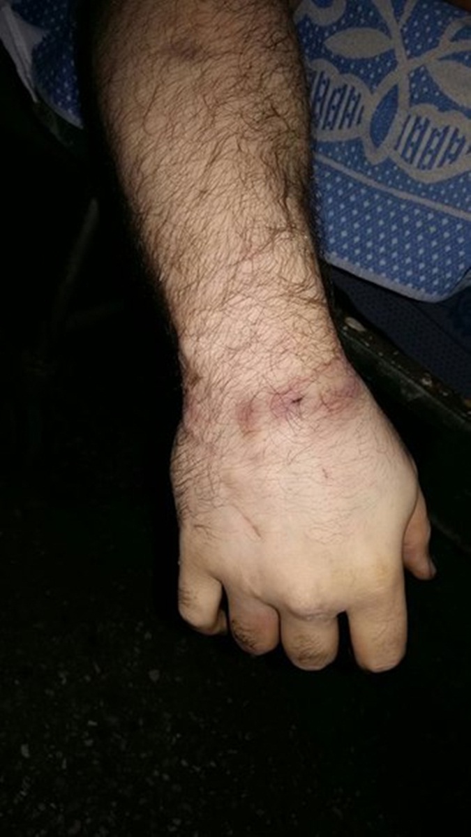 На фотографиях с морга можно заметить следы от наручников на руках убитого, а также множество ссадин на затылке, что говорит о том, что удары молотком наносились сзади, в то время пока человек в наручниках лежал лицом в пол.