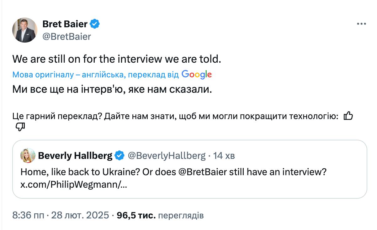 Після скандальної зустрічі з Трампом Зеленський виступить з інтерв’ю на каналі Fox News.