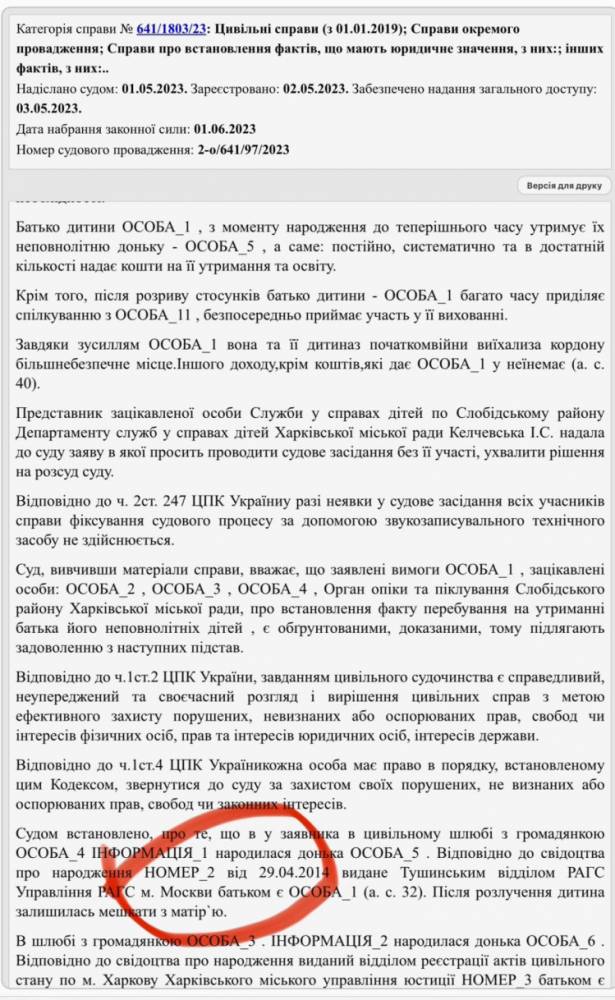 Позивач надав документи з Тушинського РАЦСу міста Москви. У документі також вказано, що метою позову було отримання дозволу на виїзд за кордон, що водночас передбачає відстрочку від мобілізації до лав ЗСУ.