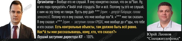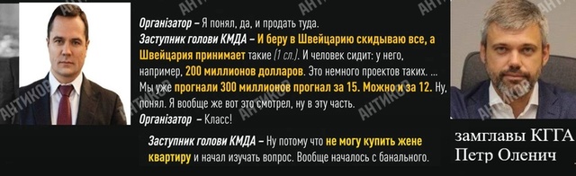 З подальшого перехоплення випливає, що у схемах бере участь і заступник голови КМДА Петро Оленич. Але все одно керує Денис Комарницький.