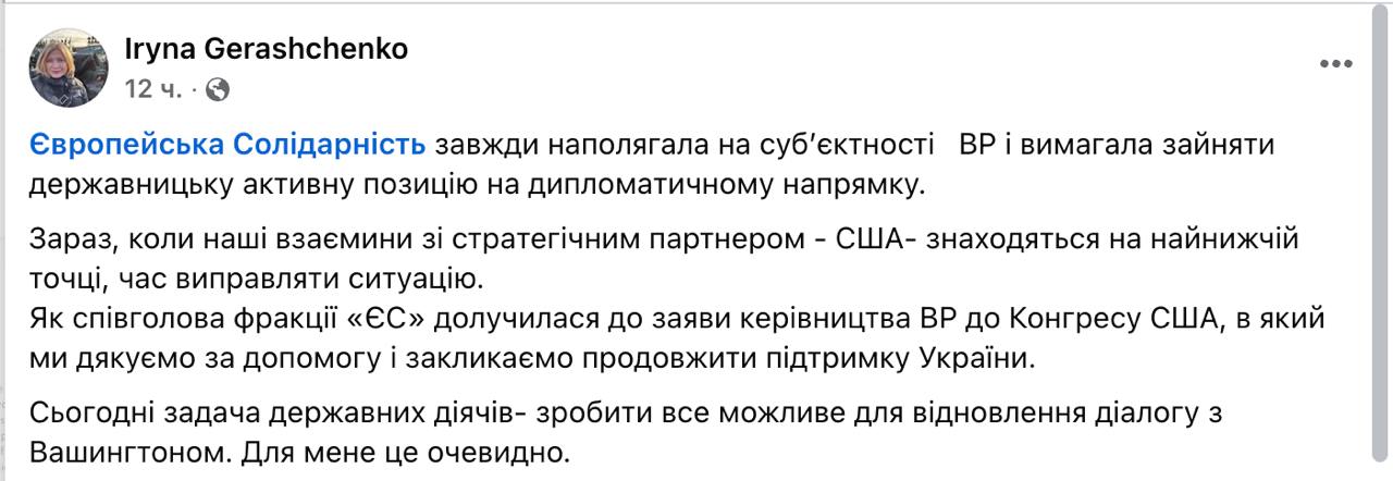 Водночас саме звернення продовжує залишатися на сайті парламенту. Раніше нардепка Ірина Геращенко підтверджувала, що таке звернення було ухвалене керівництвом Верховної Ради. У заяві, яку Геращенко підтримала, висловлювалася подяка США за допомогу і заклик продовжити підтримку України.