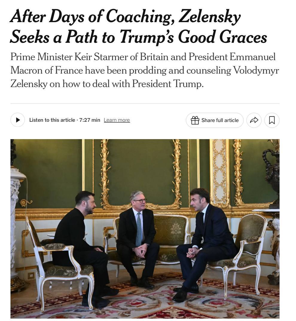 Одразу після того, як Зеленський покинув Білий дім 28 лютого, прем’єр-міністр Британії Стармер запропонував йому повернутися, щоб покращити відносини з Трампом. Однак, зрештою, вирішили «дати обом сторонам охолонути».