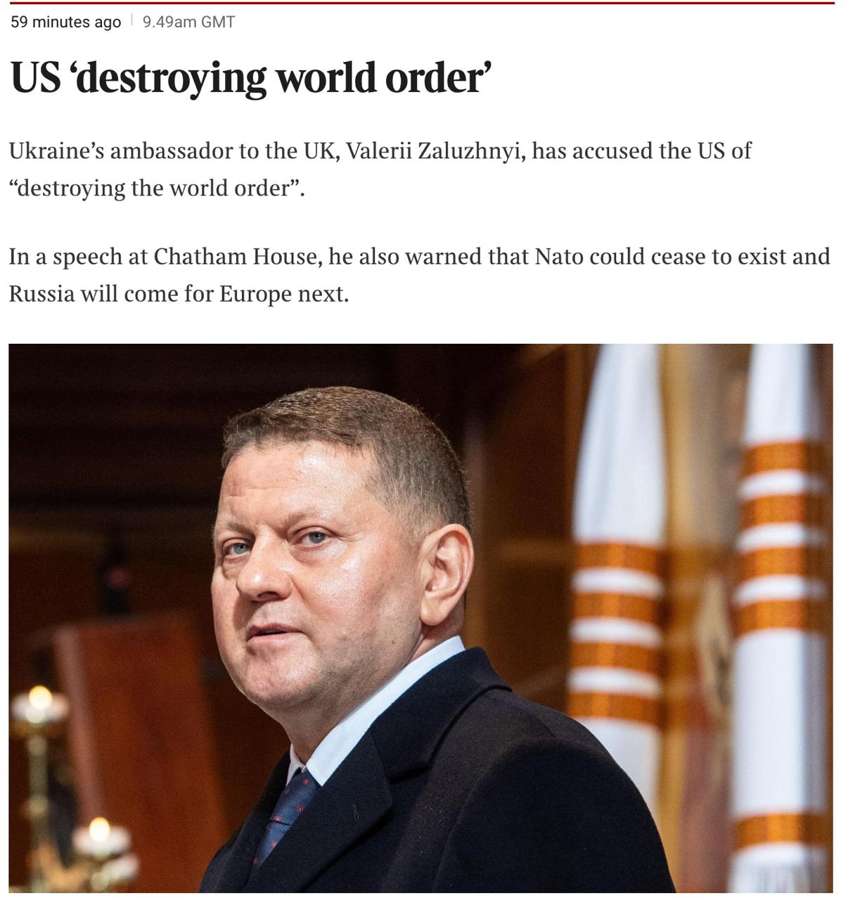 Залужний зазначив, що США «підривають світовий порядок», повідомляє The Times.