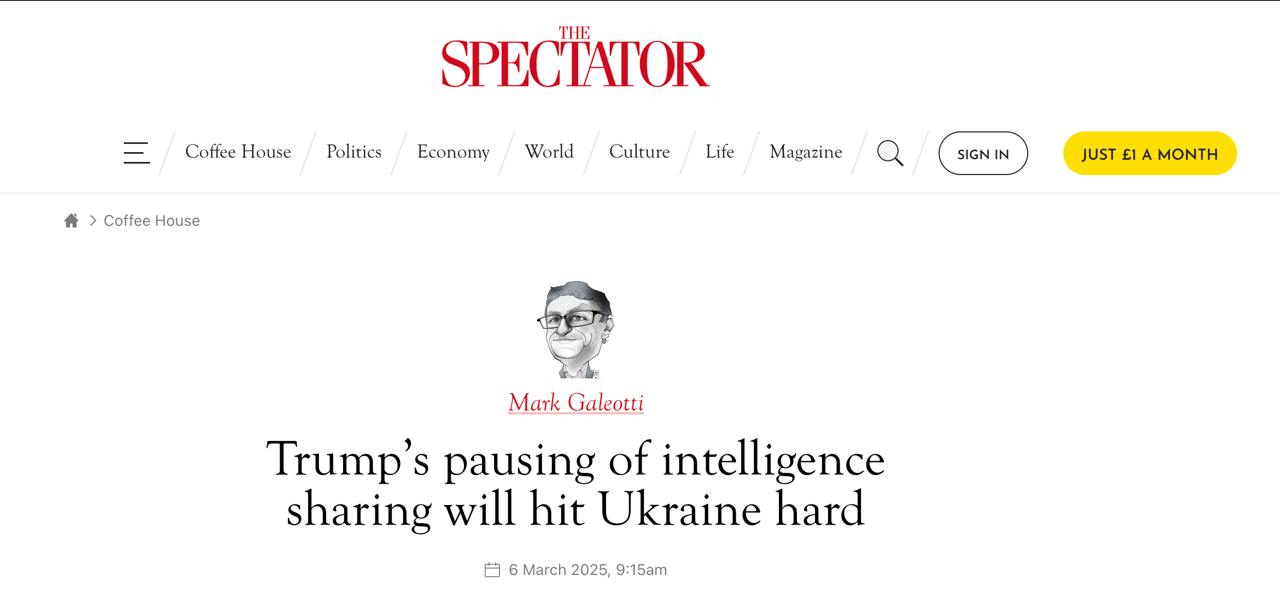 Припинення обміну розвідувальними даними за ініціативою Трампа стане серйозним ударом для України, зазначає оглядач Марк Галеотті у журналі The Spectator.