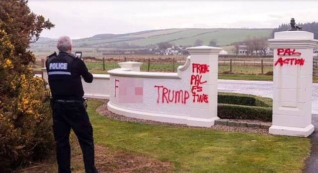 Знаменитий гольф-клуб Trump Turnberry в Шотландії, що належить Дональду Трампу, став об’єктом вандалізму з боку пропалестинських активістів. Будівлю клубу було залито червоною фарбою, а на зеленому газоні з’явився великий лозунг "Газа не продається."