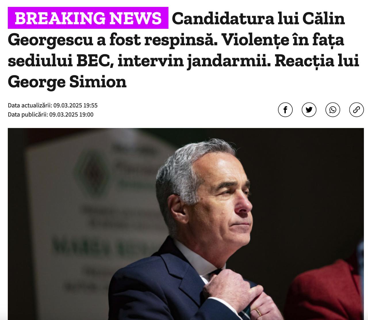 Після оголошення рішення біля штаб-квартири ЦВК почалися заворушення – прихильники Джорджеску вийшли на протест, що призвело до сутичок із поліцією. Правоохоронцям довелося втрутитися, щоб відновити порядок.