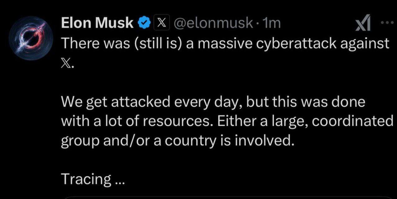 Ілон Маск заявив, що на платформу X було здійснено велику кібератаку.