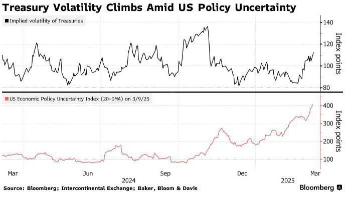 Політика президента Трампа і висловлювання міністра фінансів Скотта Бессента про готовність подолати економічні труднощі посилюють інтерес інвесторів до захисних активів. Непередбачуваність торгової політики та скорочення державних витрат підштовхують інвесторів до пошуку надійності в суверенних боргах.