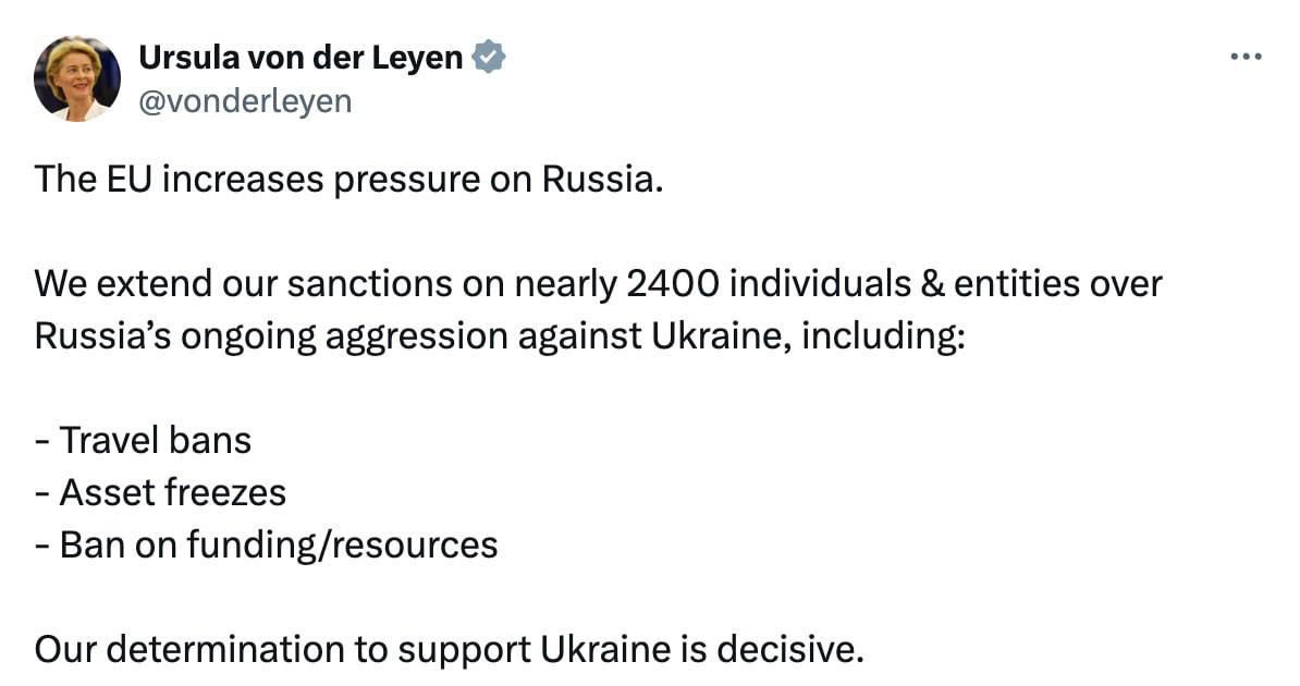 Очільник Європейської комісії Урсула фон дер Ляєн підтвердила посилення санкцій щодо Росії