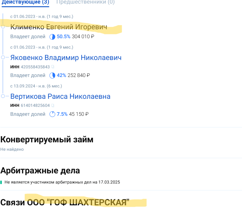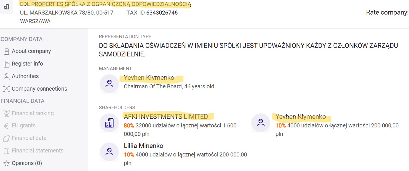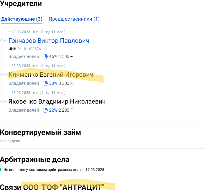 Єдиним її бенефіціаром є Клименко Євген Ігорьович. Людина з такими ж ПІБ сьогодні є співвласником двох вугільнозбагачувальних фабрик – «Шахтерская» і «Антрацит», що працюють відповідно на території ДНР та ЛНР.
