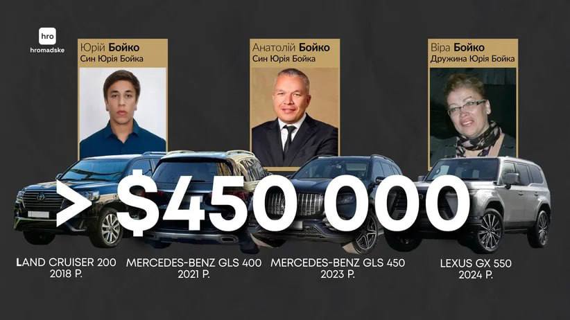 Крім того, під час війни родина Бойка придбала декілька земельних ділянок і будинків під Києвом, а також купила автомобілі на суму 450 000 доларів.