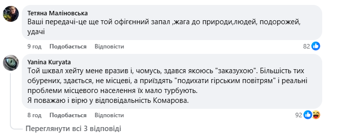 "Ви рекламуєте вбивство наших Карпат!" — написала користувачка Natali Tsodikova.