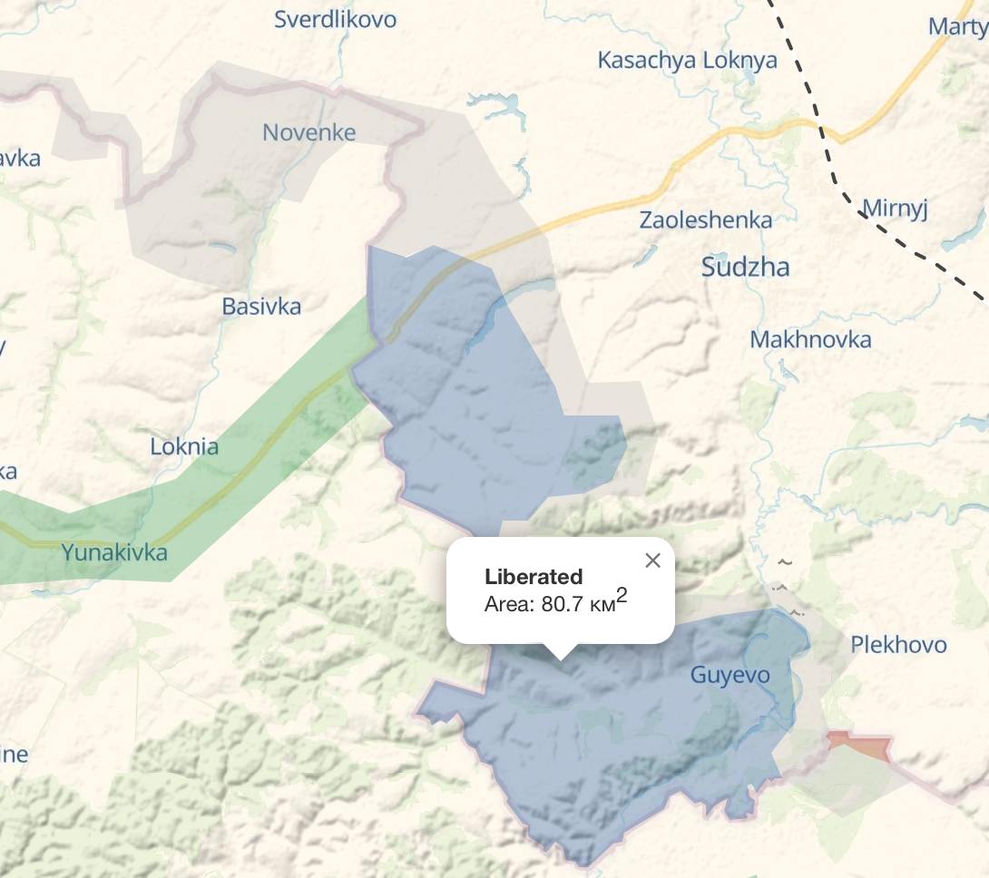 Крім того, росіяни досягли північної частини Гуєво, а також захопили ще 30 квадратних кілометрів території Курської області. В результаті цього контрольована Україною територія в регіоні зменшилася до 80 квадратних кілометрів.