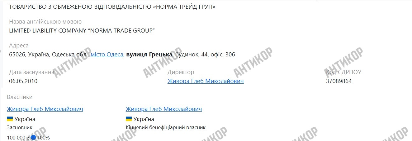 Крім того, як свідчать дані державних реєстрів, до структури власників ТОВ «Норма трейд груп» Олександр Яковенко стосунку не має: бенефіціаром фірми є інша особа.