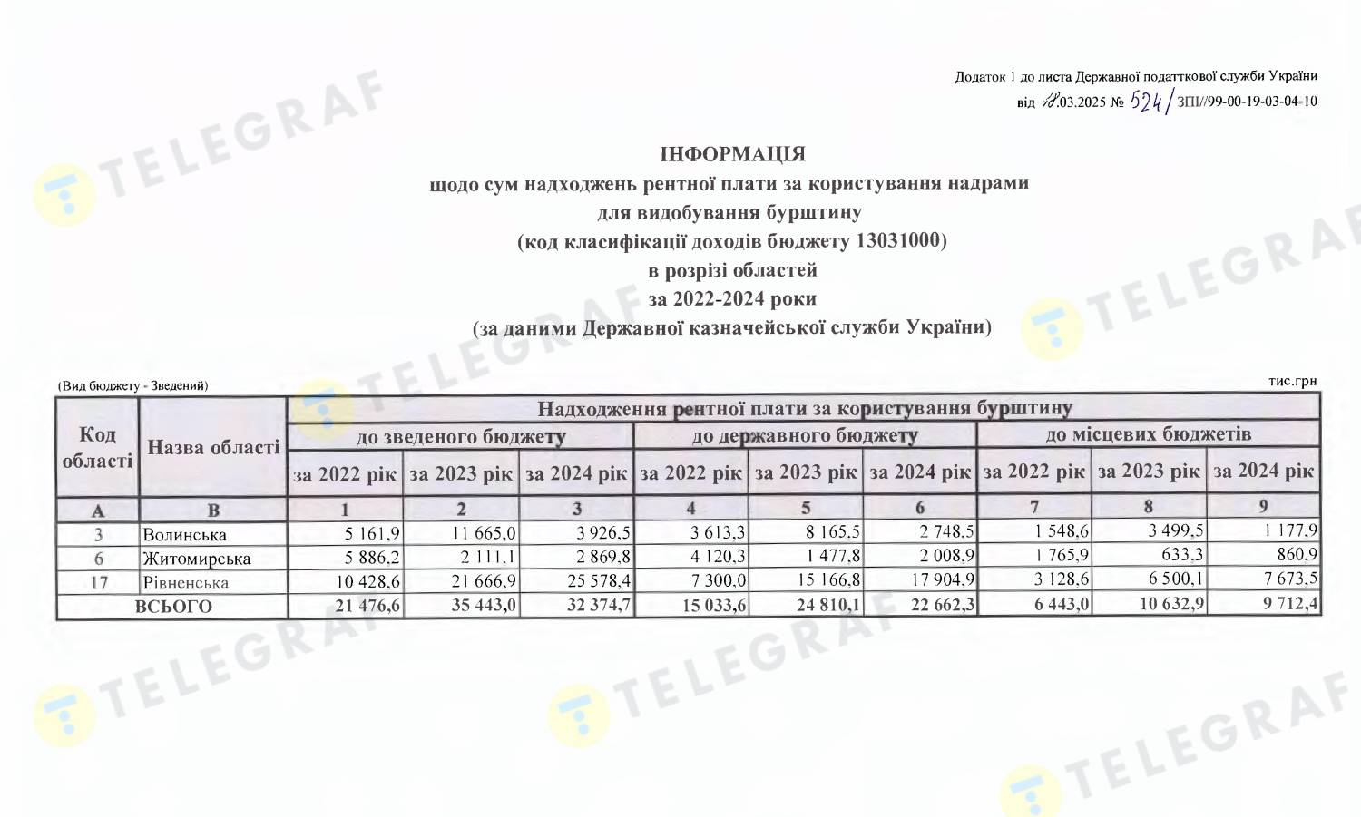 На офіційному сайті наразі міститься перелік компаній, які видобували бурштин у 2022 році. Їх тоді було 11. Крім КП, що діє на Волині, це були ТОВ "Центр "Сонячне ремесло", "Технобуд", "Деревообробна Євроліс", "Бурпром", "Західземресурс", "Будівельна компанія Дейто", "Гранойл", "Райт Солюшн", "Бізнес Еліт Груп" та державне підприємство "Бурштин України". Всі разом вони видобули 24 175 кг бурштину.