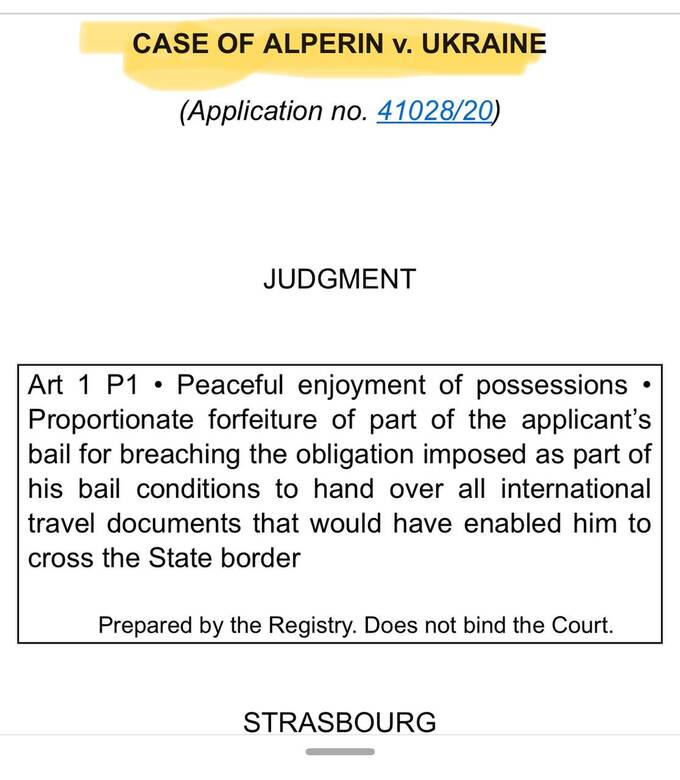 Вадим Альперін остаточно програв в ЄСПЛ за його позовом проти України.