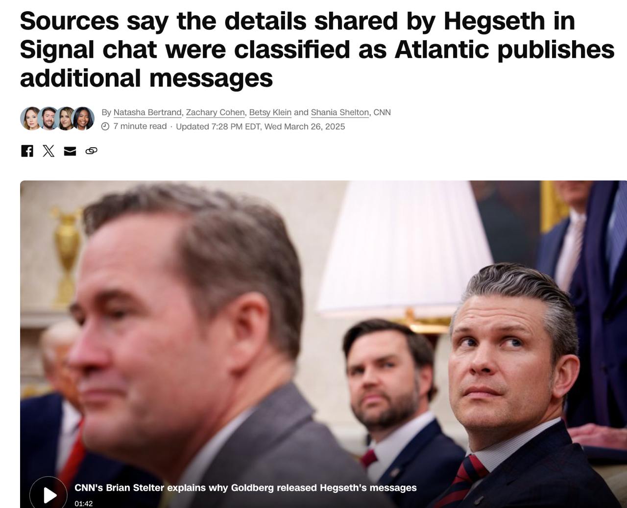 Теги: Минобороны СШАУтечка информацииУтечка данныхSignalДональд ТрампТрампСШАПит Хегсет