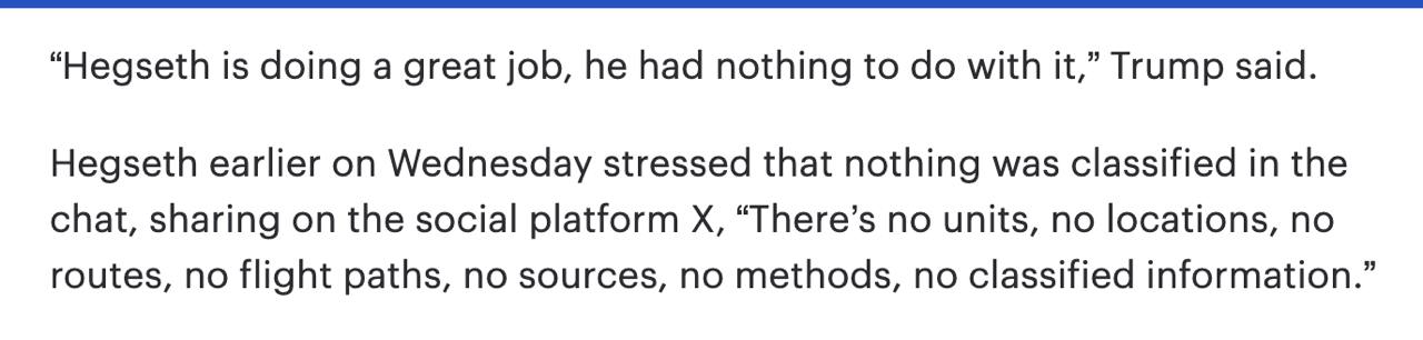 «Гегсет чудово виконує свою роботу, він не має до цього жодного стосунку», – заявив Трамп, якого цитує The Hill.