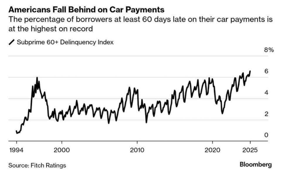 Громадяни США досягли рекордного рівня прострочення за платежами на автокредити, перевищивши показники, які спостерігалися в період кризи 2008-2009 років. Основні причини: підвищення процентних ставок, високі ціни на автомобілі та зниження купівельної спроможності населення.